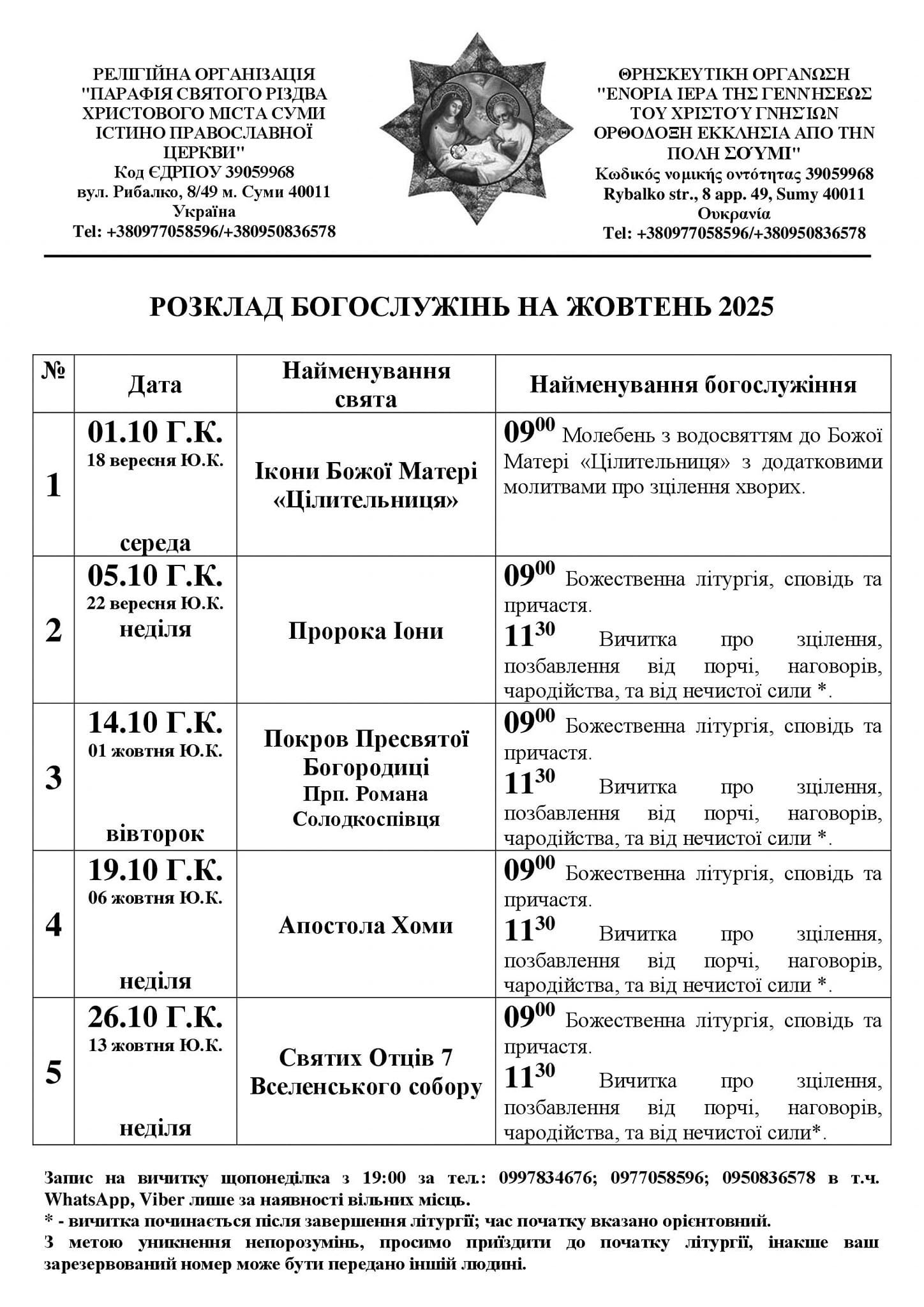 РОЗКЛАД БОГОСЛУЖІНЬ